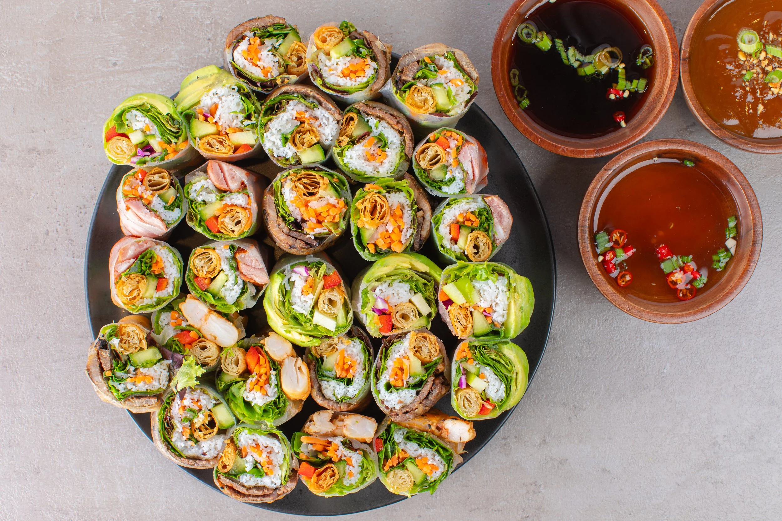 We specialize in build-your-own spring rolls, noodle bowls, rice bowls, and sandwiches as well as fresh pressed sugarcane drinks, Vietnamese coffee, refreshing tea beverages, and desserts to compliment any meal.